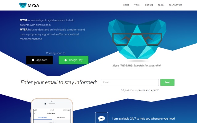 MYSA is an intelligent digital assistant to help patients with chronic pain. MYSA helps understand an individuals symptoms and uses a proprietary algorithm to offer personalized recommendations ...